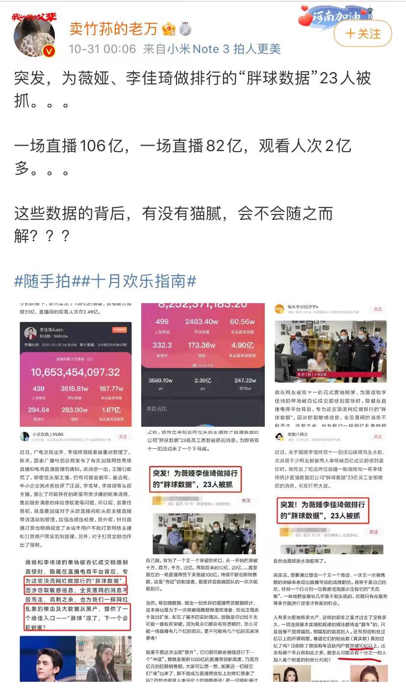 在10月20日下午开始的直播,12个半小时的时间里,李佳琦直播间成交额达106.5亿元。薇娅比李佳琦提前半小时开播,一天内的成交额也达82.5亿元。