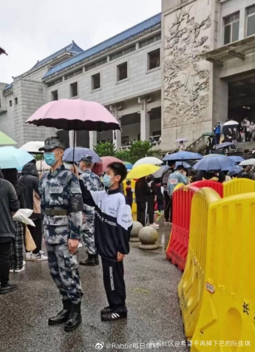 还有人给袁老的照片撑伞:“不能让爷爷淋着了。”