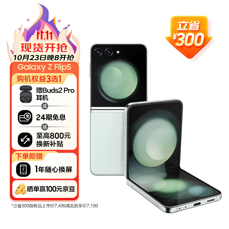IT之家 10 月 21 日消息,三星 Galaxy Z Flip5 折叠屏手机降价 300 元,8+256GB 售 7199 元,8+512GB 售 8199 元,10 月 23 日晚 8 点开售。