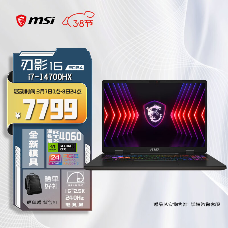 IT之家 3 月 4 日消息,微星上架了 2024 款刃影 16/17 游戏本,新品搭载英特尔i7-14700HX 处理器,可选 RTX 4060 和 RTX 4070 GPU,首发价 7799 元起。