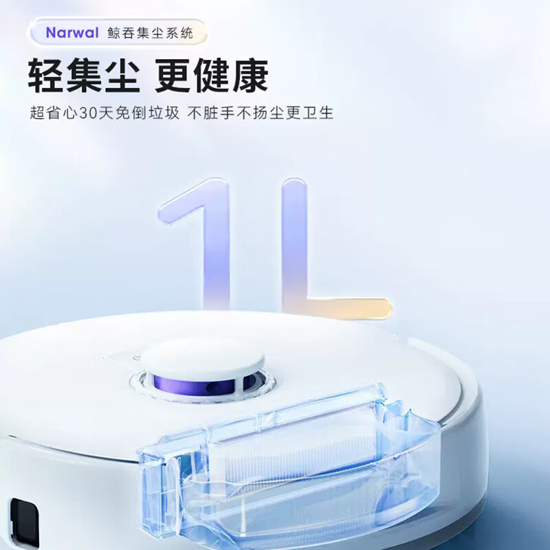 据介绍,这款扫地机器人拥有6800 Pa吸力,采用“零缠绕”滚刷,可选“轻音”“标准”“强劲”“超强”四档吸力模式。