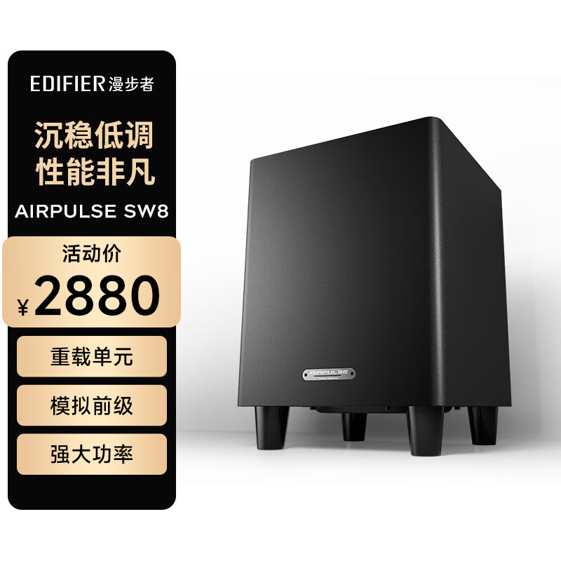 IT之家 4 月 2 日消息,漫步者今日上架了一款 SW8 大功率音箱低音炮,显示为2880 元。据介绍,SW8 由音响设计大师 Phil Jones 亲自操刀,专为更高要求的家庭影院和 2.1 音乐系统而设计。