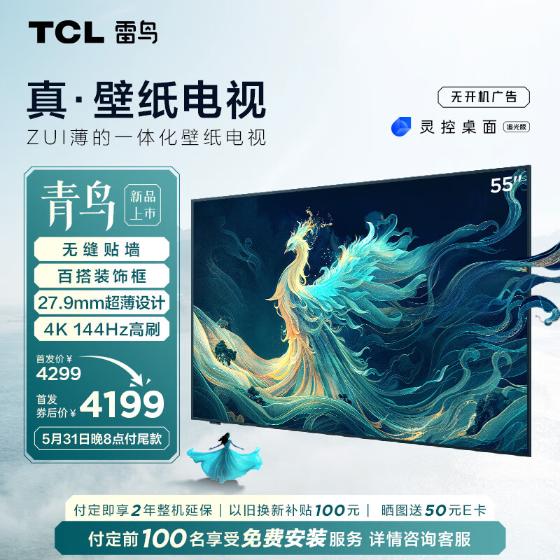 IT之家 5 月 18 日消息,雷鸟日前推出“青鸟”系列真・壁纸电视,共有 55 英寸、65 英寸、75 英寸、85 英寸四款尺寸,售价 4199 元起。