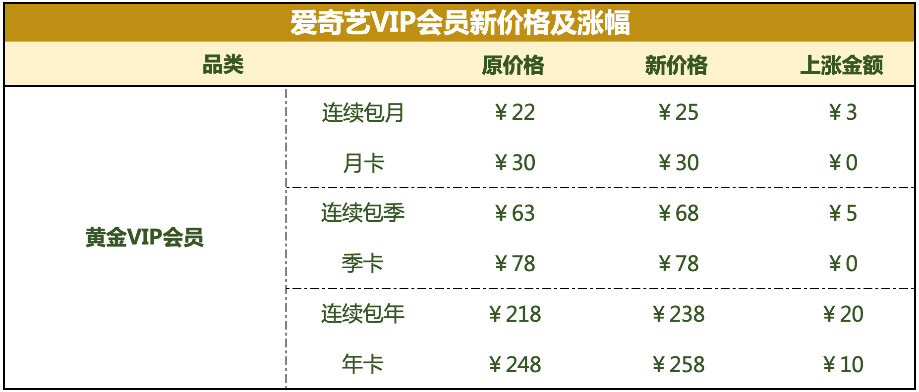 时隔一年,爱奇艺会员再次涨价,最低价格为25元。红星资本局发现,爱奇艺不含电视端的黄金会员涨价后,各套餐价已追平优酷、腾讯。 对于此次涨价,爱奇艺的回应是:“将会继续加大优秀作品的投资,让优秀内容创作者有所回报,让产业生态更健康。” 三次涨价后, 会员最低价从15元到25元 近日,爱
