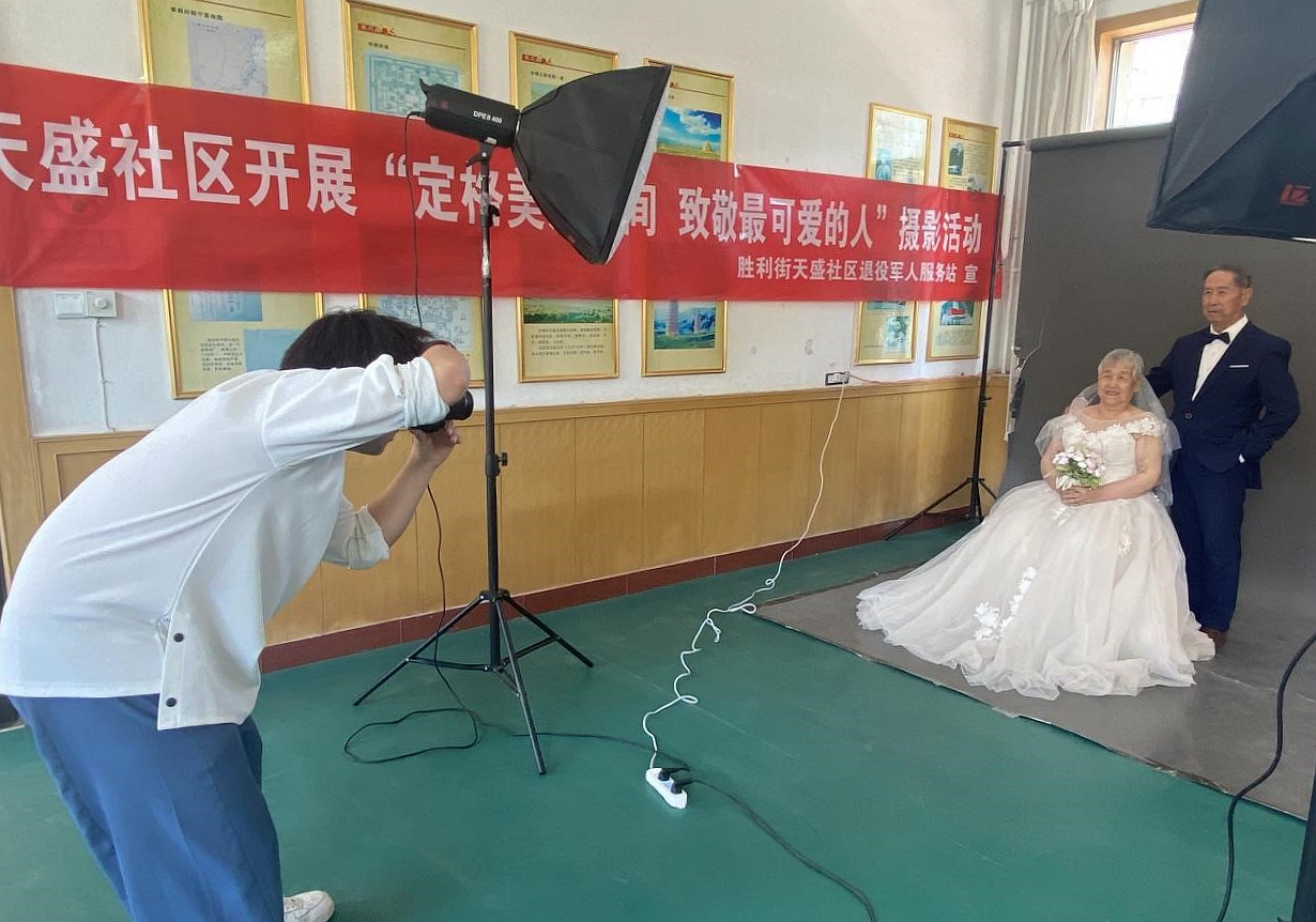 “我们那个年代没有条件拍婚纱照,领个证就结婚了。这次能补拍婚纱照也算弥补了当年的遗憾。”3月26日上午,在银川市胜利街天盛社区市民驿站,年近七旬的庞海洲紧握着老伴的手,拍下人生中的第一张婚纱照。 从青春年少到白发苍苍,庞海洲与爱人携手走过几十个春秋年华,却一直有个遗憾,“两人过了大半辈子,连一张婚纱