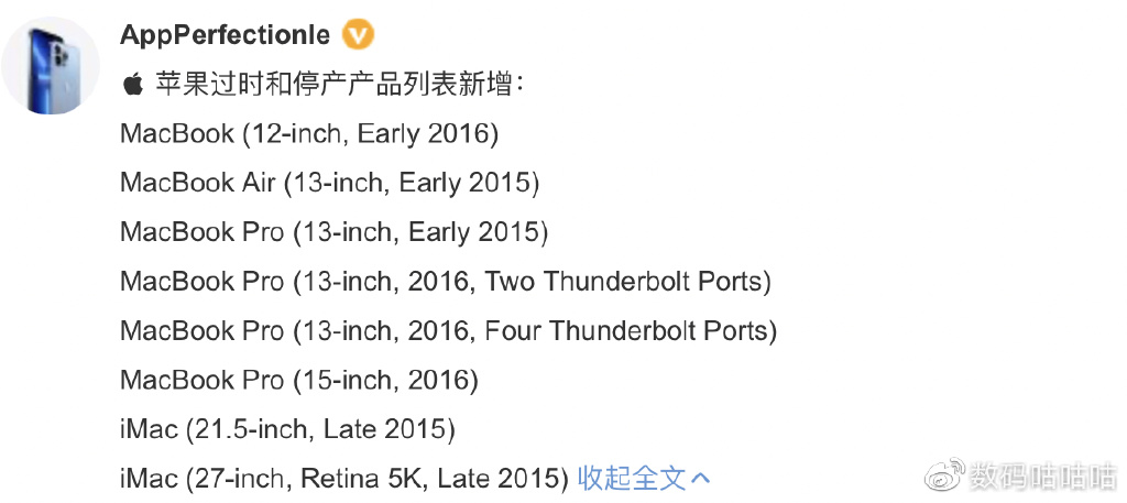 一觉醒来,苹果将8款设备列收入过时产品,这也意味着苹果不会再为这些产品提供维修服务。这8款产品分别是MacBook 2016款、MacBook Air 13英寸2015款、MacBook Pro 13英寸2015款、MacBook Pro 13英寸 2016款(TWO和Four)、MacBook P