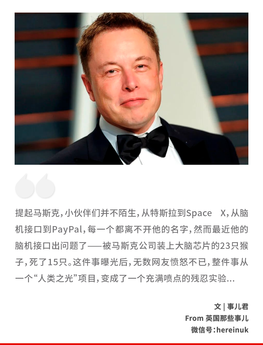 话说,马斯克除了造车造火箭,他还有一家叫Neuralink的公司。 正是因为这家公司的研究,最近,马斯克被控虐猴。 【“极度痛苦”:被马斯克公司装上大脑芯片的猴子,23只中,15只死了。】 事情要从2016年说起。 那一年,马斯克和其他人一起成立了一家名为Neuralink的公司。 这是一家研究脑机