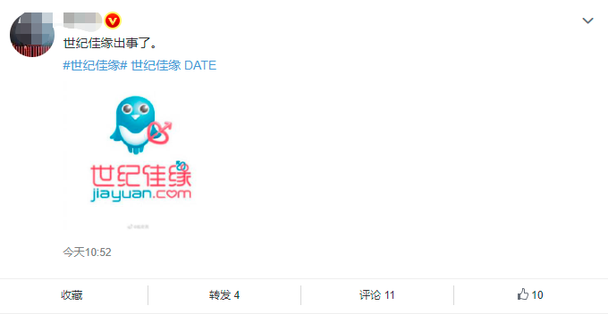 7月18日,有网友在社交平台发帖称,世纪佳缘出事了。当网友还在猜测之际,网上流传出一张对话截图称:公司的CEO(首席执行官)、COO(首席运营官)、CFO(首席财务官)和几个VP“消失了”。针对上述传闻,澎湃新闻援引百合佳缘集团公关总监董世彪回应称,此事其暂不知情,正在核对。“我不知道发生了什么事情