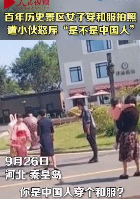 穿着和服在景区内拍照,素不相识的两伙人却因此吵开了。图源人民视频 据人民视频9月27日报道,26日在河北秦皇岛一百年历史景区内,有男游客上前怒斥两位身穿和服的女性游客:“你是中国人穿个和服?” 女游客则回怼::“别指指点点,跟谁指指点点呢?”、“别跟我指指点点,管好你自己。” 双方的争执吸引了不少路