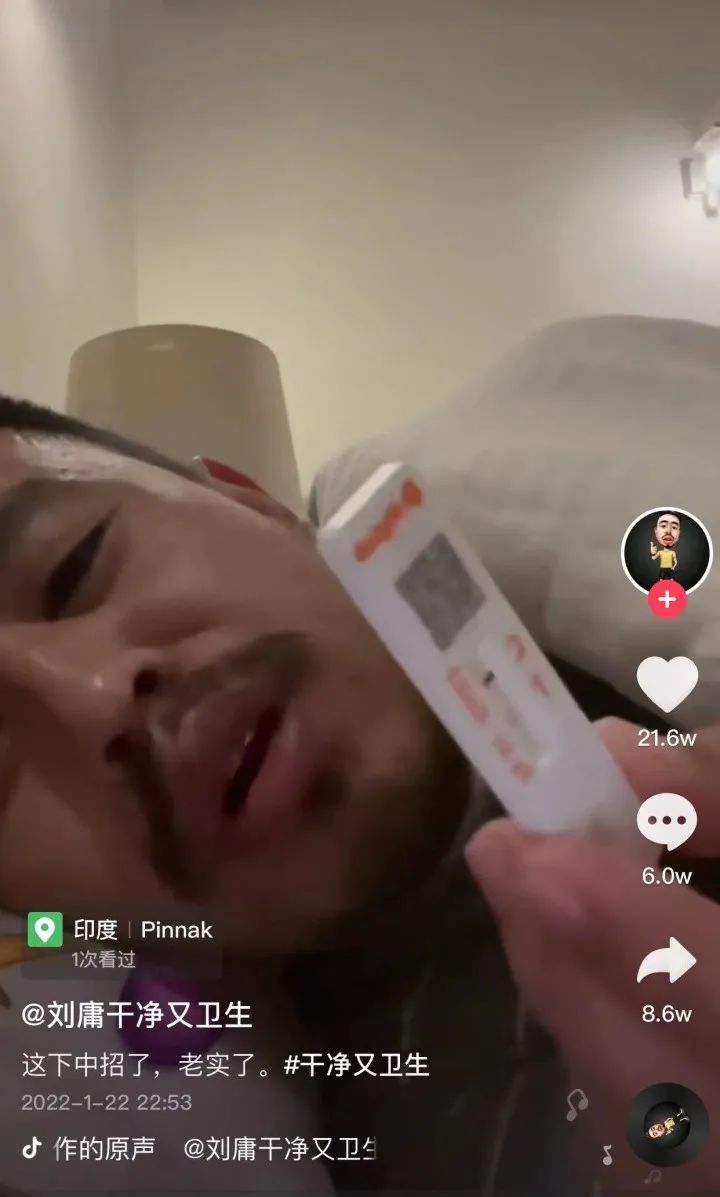 1月22日晚,知名短视频博主“刘庸干净又卫生”更新视频,并透露其两次自行核酸检测结果皆为阳性。 刘庸在视频中称,对于自己会不会中招,他其实并不在意。但不能理解的是,他原本以为自己都免疫了,居然还会测出阳性。他表示目前就是发烧,然后身上疼,尤其是腰部像“折了”一般。目前账号暂时停更,康复再继续。 刘庸