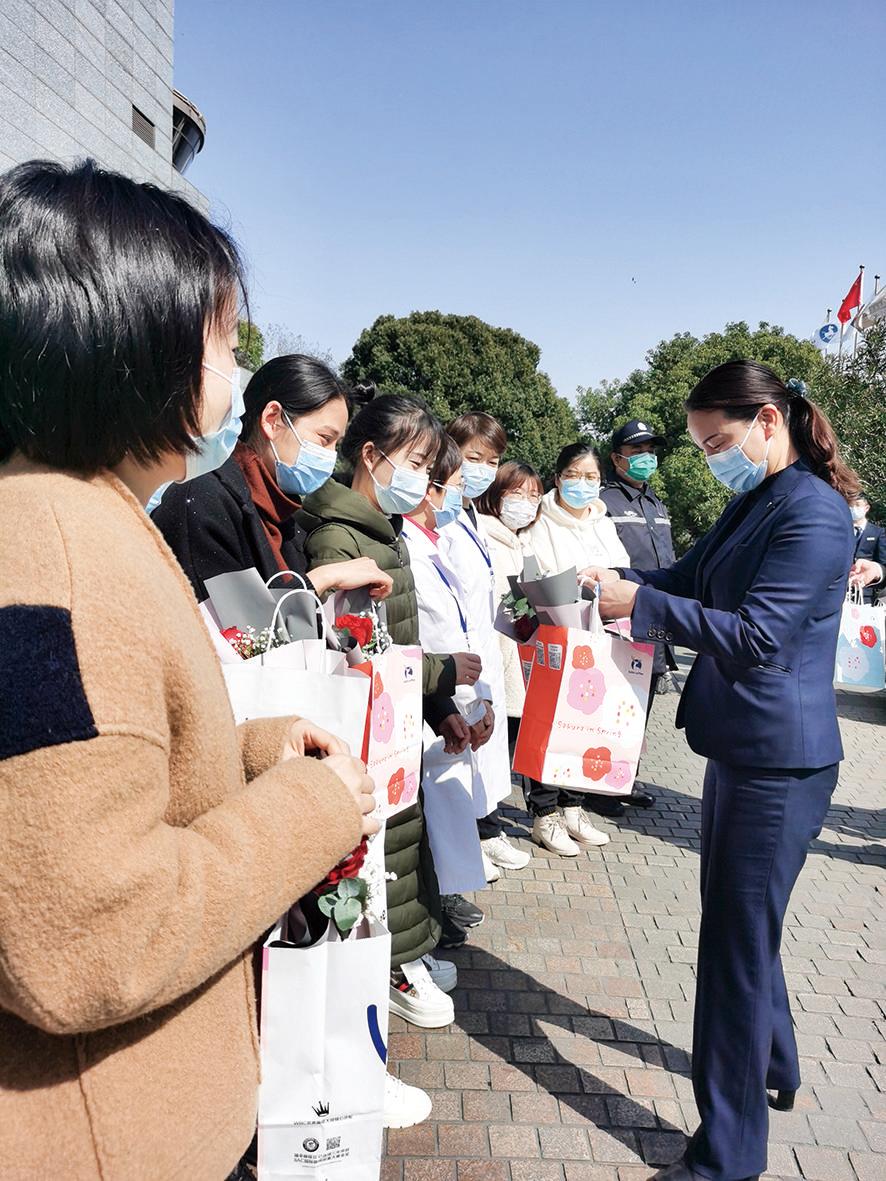 本文转自:东方网 “玫瑰象征着对美好生活的向往,满天星寓意着群众力量,感谢你们的坚守,相信只要我们众志成城,就一定能战胜疫情。”“三八”国际劳动妇女节当天,松江区某集中隔离点的抗疫巾帼们收到了一束束鲜花和一声声祝福。 “辛苦了,节日快乐!”“谢谢!”……当天下午,在该集中隔离点门口,附近商家自发为这