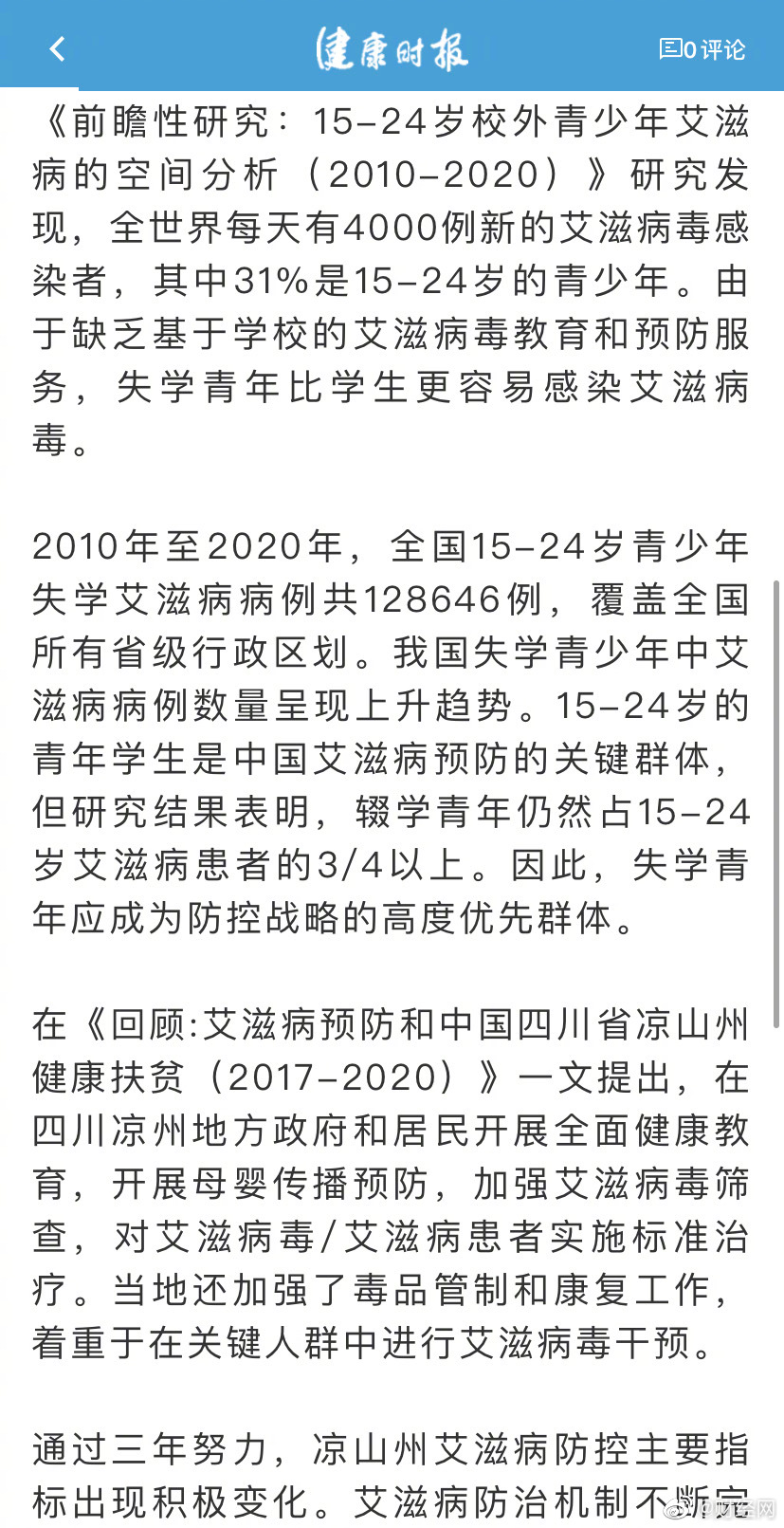 中国疾控中心周报:辍学青年仍然占15-24岁艾滋病患者的3/4以上,失学青年比学生更易感染艾滋 中国疾控中心周报:辍学青年仍然占15-24岁艾滋病患者的3/4以上,失学青年比学生更易感染艾滋 2021年11月30日 08:04 财经网 【中国疾控中心周报:辍学青年仍然占15-24岁艾滋病患者的3/4