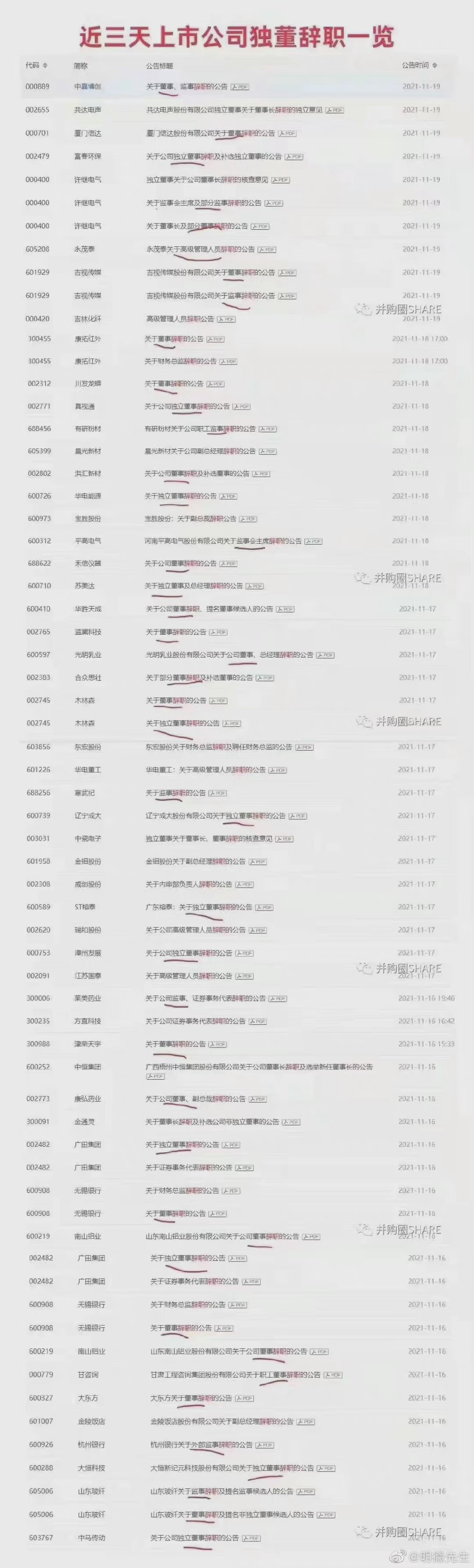 上市公司独董惊现辞职潮,A股8天17名独董离职:康美药业独董巨额连带引关注,刘姝威感慨“不冤枉” 上市公司独董惊现辞职潮,A股8天17名独董离职:康美药业独董巨额连带引关注,刘姝威感慨“不冤枉” 2021年11月19日 23:09 凤凰周刊 【#上市公司独董惊现辞职潮#,#A股8天17名独董离职#: