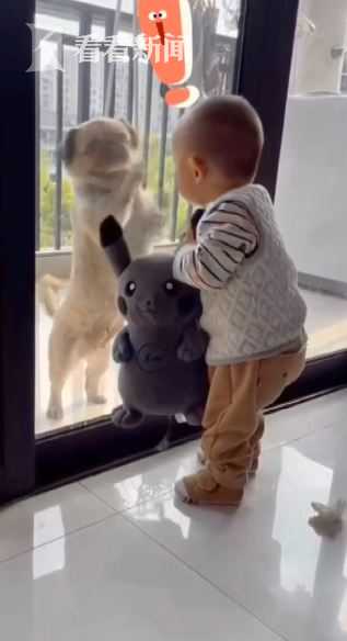 狗狗狂挠玻璃门,萌娃举动让人捧腹!汪星人:人类幼崽行为太迷惑