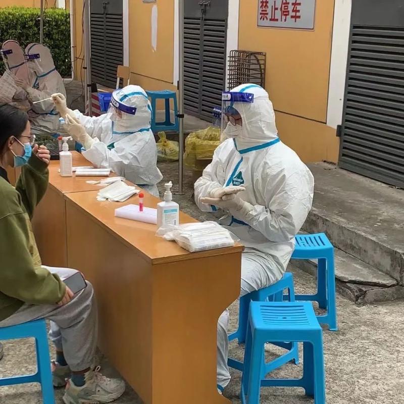 封校已满月,上海中医药大学现阶段每天组织20%在校师生做核酸检测,师生志愿者们轮班上岗,一般需要3个小时。如果当天是全员核酸,所有志愿者一齐上阵,就需要连续采样6小时。 穿上“大白”防护服后,偶尔也有学生透过护目眼镜认出基础医学院教学干事马旭翔。学生惊讶地说:“原来学校里的‘大白’就是我们的老师啊!