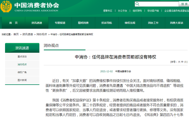近日,“加拿大鹅”消费者维权事件引起舆论哗然、网友热议。继12月1日上海市消保委对加拿大鹅进行约谈后,中消协也就此发声:尊重消费者权利、保障消费者权益是经营者的应尽义务,在这方面,任何企业、任何品牌都没有例外特权。而央视则评论其“傲娇且无脑”。上海市消保委发出灵魂三问,下周还将约谈加拿大鹅12月1日