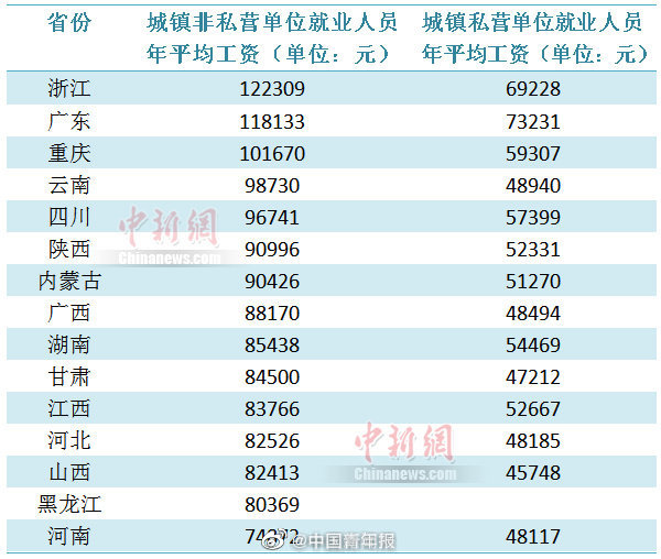 【#15省份发布2021年平均工资#,多省IT业金融业平均工资最高】中新网,据不完全统计,截至6月5日,至少已有15个省份发布了2021年平均工资数据。浙江、广东、重庆的城镇非私营单位就业人员年平均工资超过10万元大关。从国家统计局发布的2021年全国平均工资来看,不管是城镇非私营单位还是私营单位,