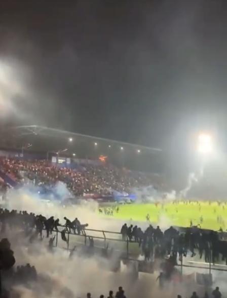当地时间10月1日晚,在印尼东爪哇省玛琅坎朱鲁汉体育场举行的足球赛上,两队球迷发生暴力冲突事件,导致129人死亡,大量伤者被送往当地医院。当地人士在医院里拍到的画面显示,医院里人满为患,到处都是伤者。 当地警方介绍,这个体育馆只能容纳3万多人,但是当晚的实际人数超过了4万人。印尼政治、法律和安全事务